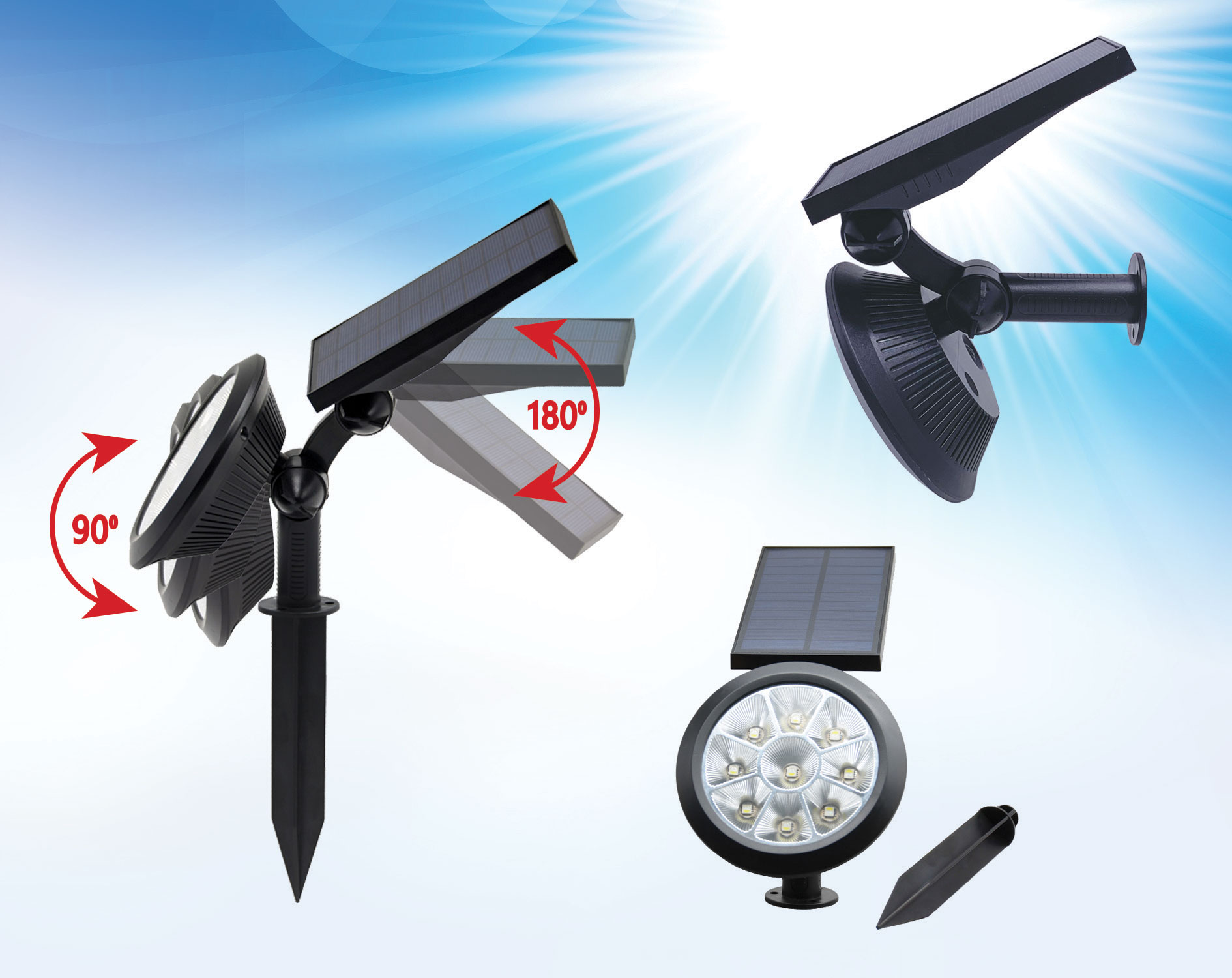 • תאורה סולארית לגינה ספוט מתכוונן לזויות הארה רצויות